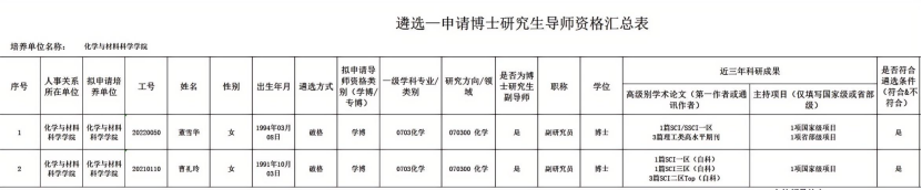 经导师本人申请,学院党委对导师进行师德师风及思想政治素质审查,学院专人对申请人的申请(聘用)材料的真实性、学科相关性及是否符合遴选条件进行审核,现将材料审核通过名单公示如下: