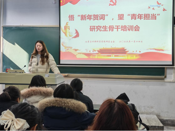 培训紧扣“学贺词、明方向、勇担当”主线,聚焦思想引领核心。研究生会指导教师刘慧伦带领工作人员集体学习习近平主席 二〇二六年新年贺词,围绕“青年担当”展开交流研讨,结合研究生会服务宗旨,分享对新时代青年责任使命的理解,进一步凝聚“立足岗位服务同学、扎根学院助力发展”的思想共识。