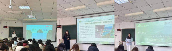 为深入学习贯彻习近平生态文明思想,强化研究生思想政治教育,厚植青年学子生态环保理念,引导其勇担生态建设时代使命,3月18日下午,特邀学校“狮山润心”研究生理论普及宣讲团创新理论宣讲组,开展以“从都江堰到美丽中国——习近平生态文明思想的古今智慧与实践”为主题的专题思政宣讲活动。学院百余名研究生现场聆听宣讲,接受思想洗礼与精神熏陶。