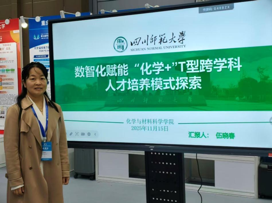 此外,应组委会邀请,11月15日上午,成果研发团队负责人伍晓春教授作为主讲嘉宾参加西南地区高校展区工作坊并作主题报告。报告聚焦如何开展数智化赋能本科人才培养、提升地方师范院校高等教育内涵建设、不断丰富学校优质教育资源、助力跨学科人才培养等,发出学校高质量发展的声音。