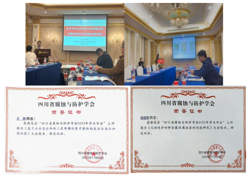 2025 年 11 月 28 日,四川省腐蚀与防护学会学术会议在成都隆重召开。我校组织研究生代表参会,其中王婷、张桂萍两名学子凭借扎实的科研基础与出色的表达能力登台作学术汇报,其研究成果获与会专家高度评价,充分展现了我校科研育人成效与青年学子的学术潜力。本次会议汇聚全省高校、相关企业的数十位专家学者、科研骨干与青年学子,聚焦腐蚀及控制技术领域前沿议题展开深度研讨。腐蚀与防护技术是保障工业生产安全、延长重大工程装备服役寿命、推动绿色低碳发展的关键支撑,在航空航天、海洋工程、油气化工、基础设施建设等众多领域具有不可替代的作用。加强腐蚀防护领域的学术研究与技术创新,对于保障国家关键基础设施安全、促进产业高质量发展具有重要现实意义。